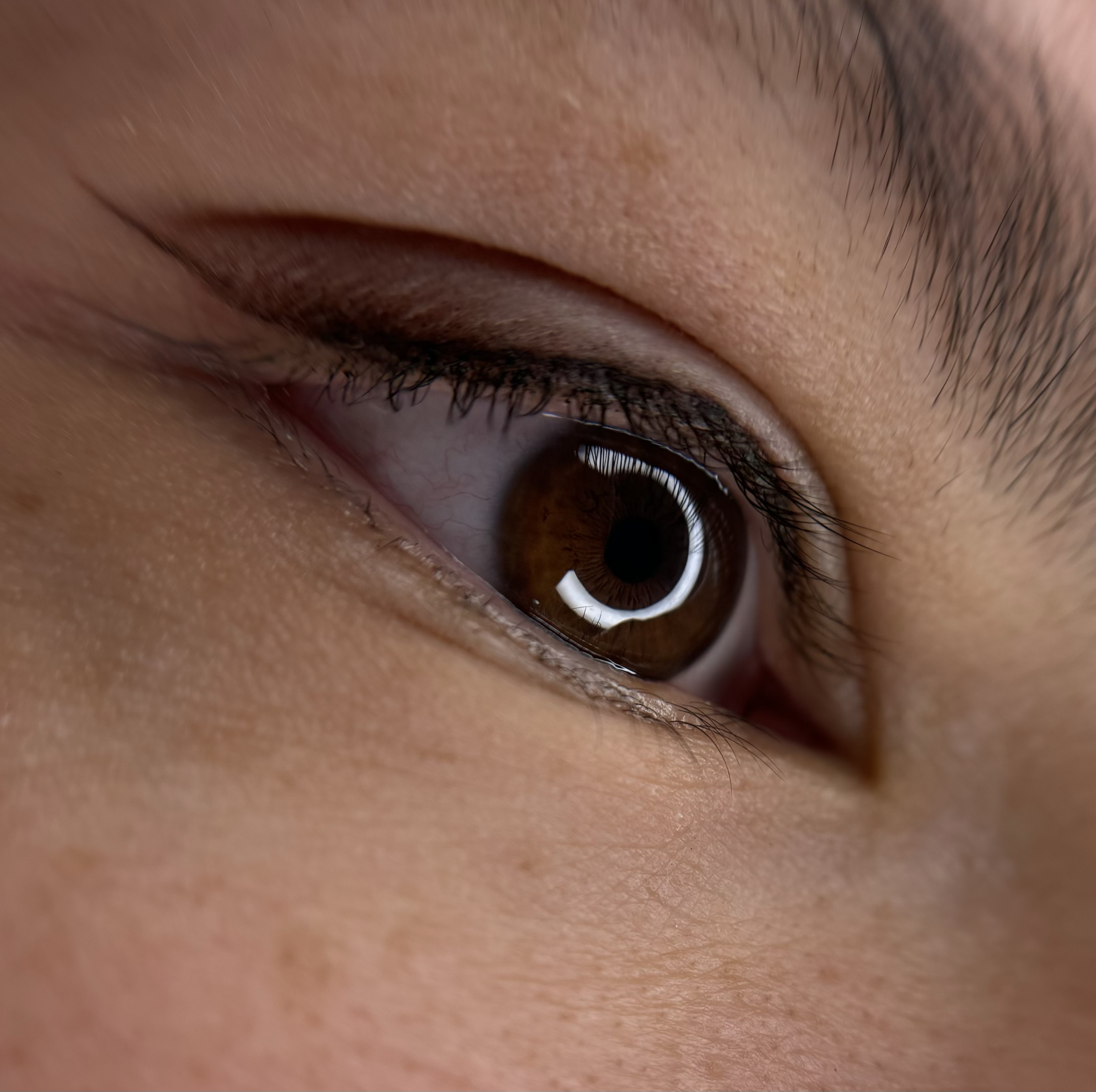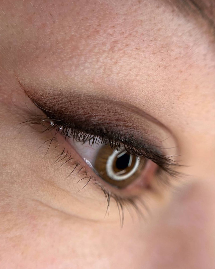 Межресничка и деликатные стрелки, которые не выглядят ярко: без графичных линий, без чёрных полос и без эффекта «тату». Только аккуратное заполнение межресничного пространства, которое делает взгляд чище, свежее и выразительнее.
