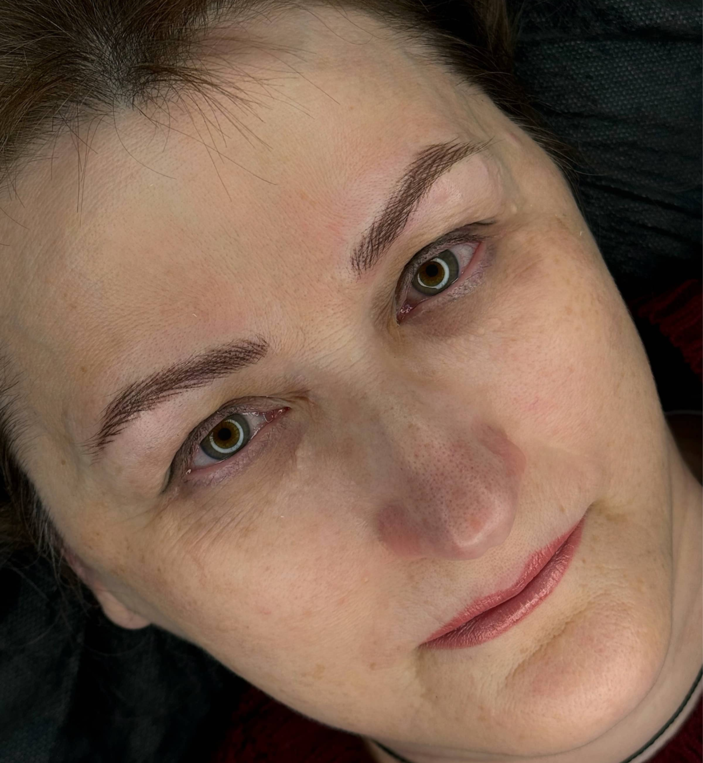 Я делаю мягкую, деликатную волосковую технику, которая подходит коже 35+. Без тёмных полос, без “слишком ярко”, без неестественной графики — только аккуратные, живые волоски, которые выглядят натурально даже вблизи.