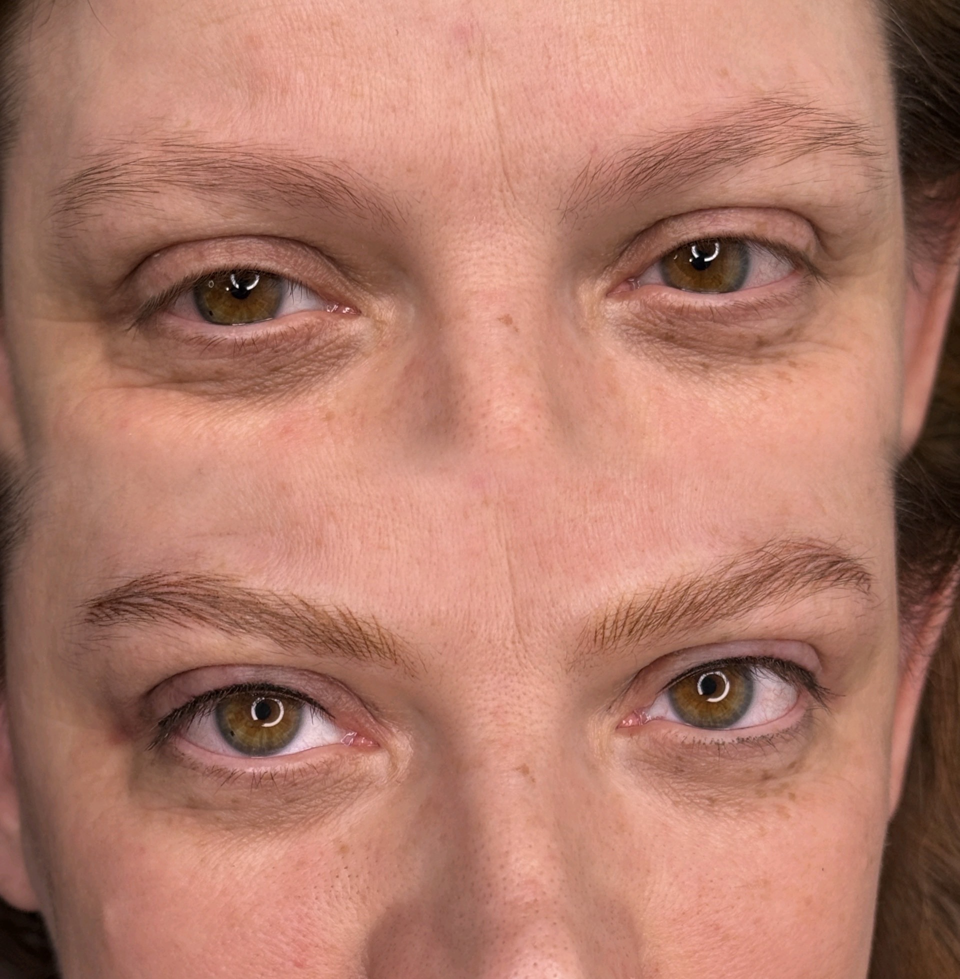 Результат выглядит аккуратно и натурально: без резких линий, без “лишней яркости” и риска уйти в рыжину/синеву. Мягкая техника подходит коже 35+ и красиво омолаживает взгляд.